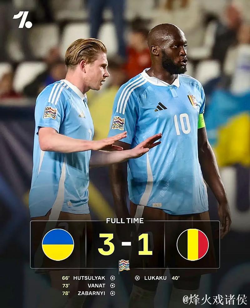 欧国联-卢卡库进球无济于事 乌克兰3-1逆袭比利时